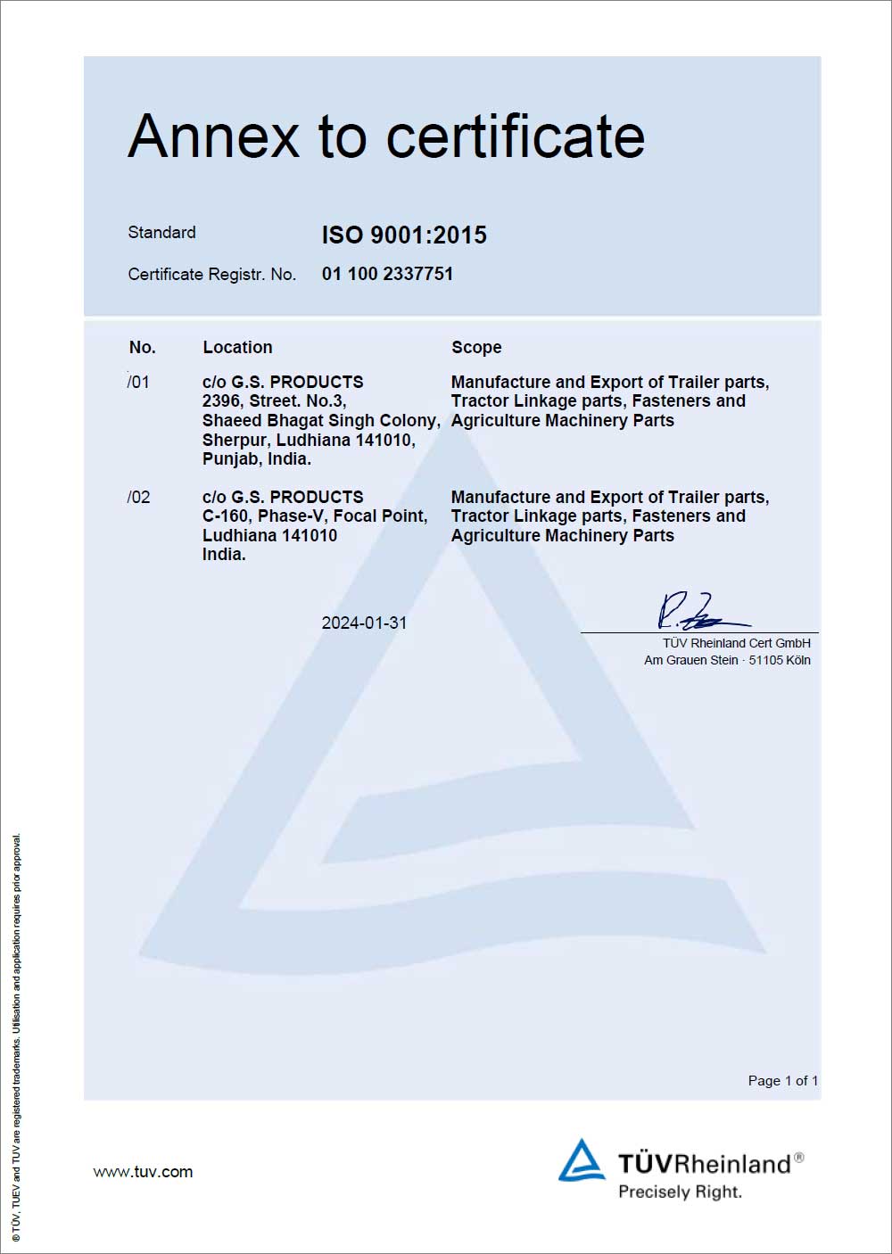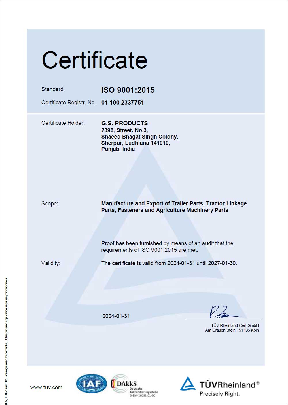 G.S. Products quality procedures are based on our many years of manufacturing experience and the customer specific requirements. We focus on in-house quality control on the in-coming material, during the production process & Final Inspection, to ensure that only approved products are shipped. We achieved customer satisfaction with the involvement of our team and by using the latest Quality Management System to ensure continual improvement in product quality